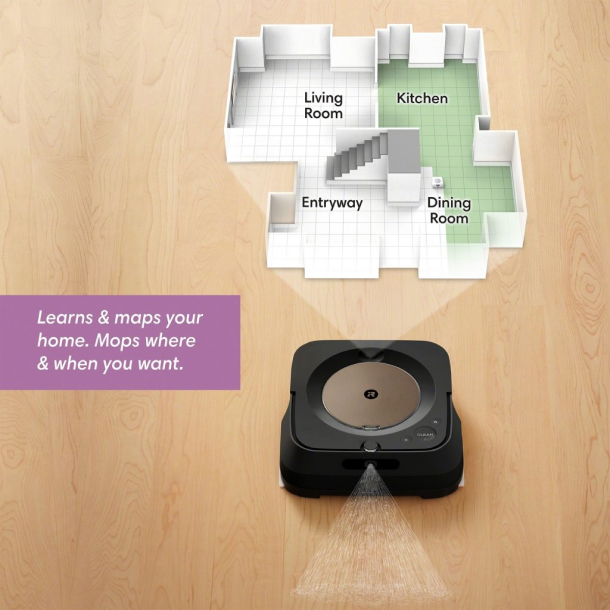 Coffee spill on the floor? Dog track in mud? The m6 can target specific areas within your rooms, like in front of the couch or under a table, for easy, hands-free mopping, with a simple request to your voice assistant* or via the iRobot Home app.